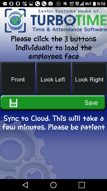 If you are loading a new employee you will need to take three photos of the employee's face and save the details to the database.